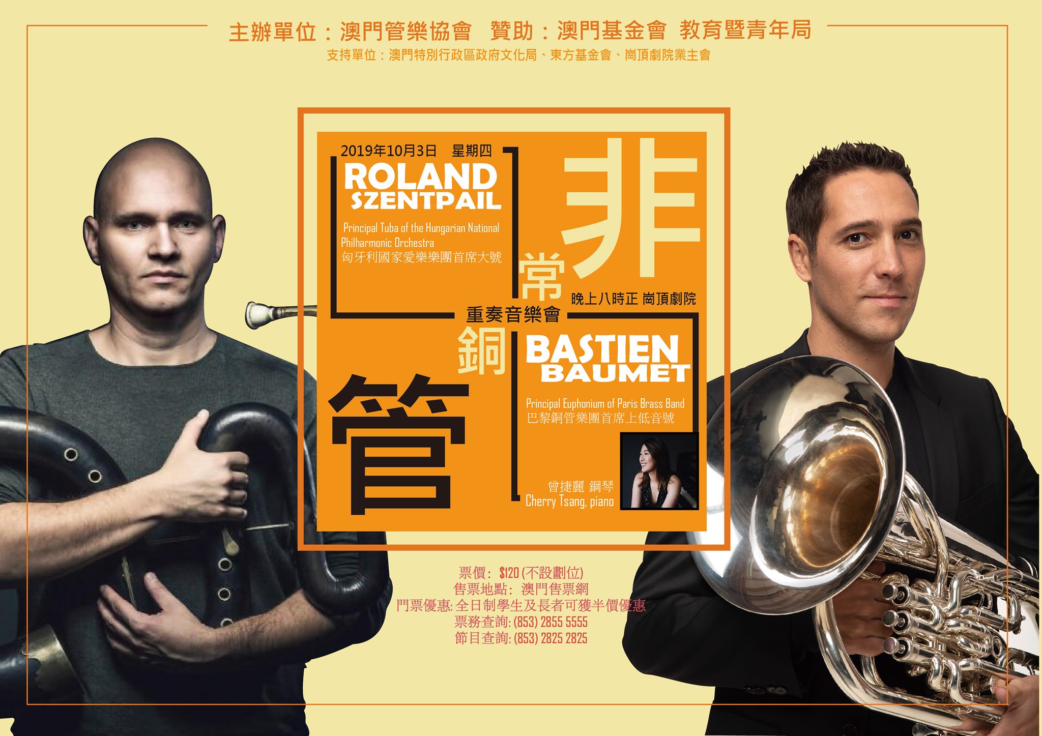 Roland Szentpali joins Bastien Baumet for a brass concert at Dom Pedro V, to take place on October 3, 2019 and all to be amazed.